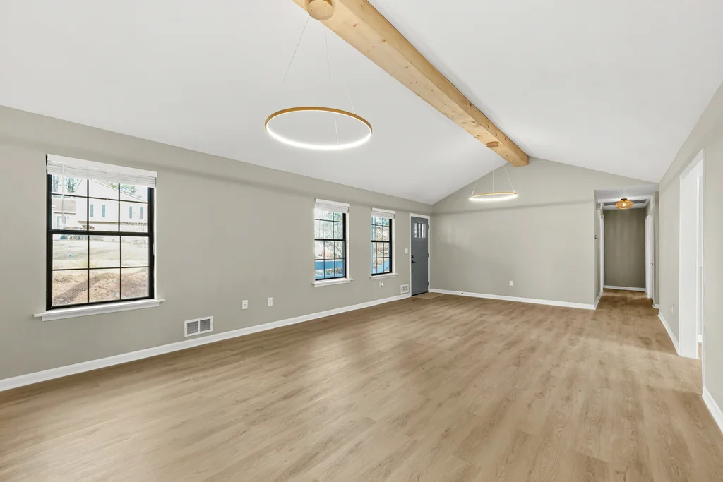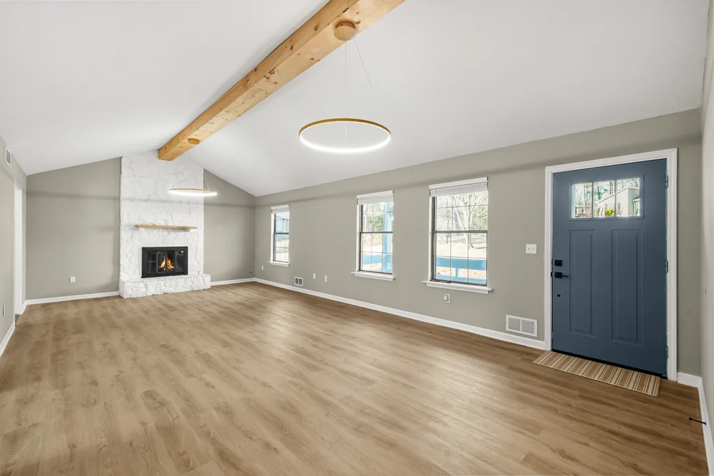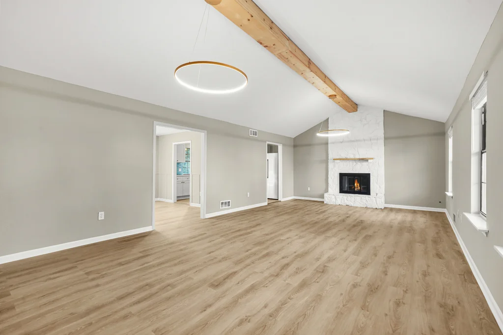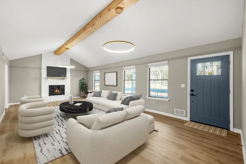 This beautifully refreshed 3-bedroom, 2.5-bath ranch sits above a spacious two-car garage and has been completely updated with intentional finishes and a warm, modern aesthetic. From the moment you step inside, you’re greeted by wide-plank flooring, fresh designer paint, and a bright, open layout that feels both elevated and inviting.