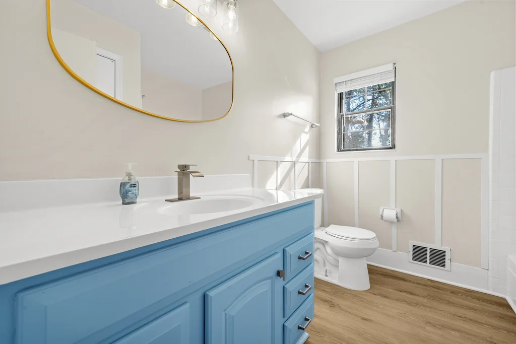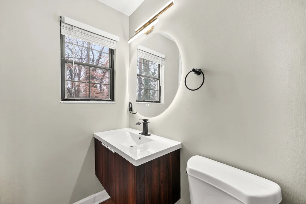 The main level offers three spacious bedrooms and two updated bathrooms designed with a crisp, contemporary feel. Natural light pours through the home, highlighting every detail of the renovation.
