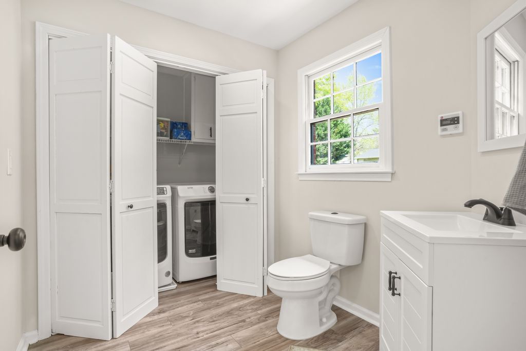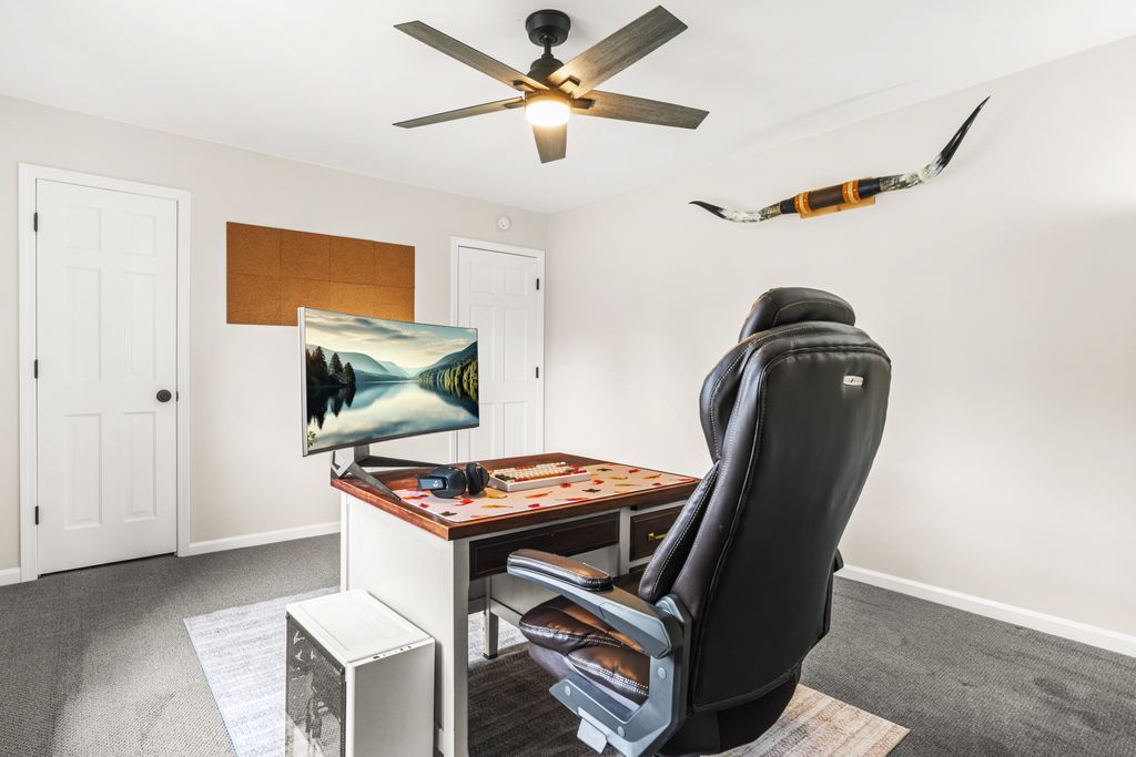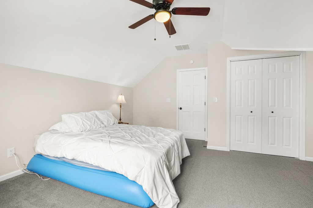 Beyond the primary, you have two secondary bedrooms and an additional hall bathroom accessed via the main stairs. Off of the kitchen, next to the breakfast nook and the laundry room, there is another set of stairs leading to a private bedroom and bathroom. Think of all the ways that could be useful! A separate office space so that you can mentally, and physically, separate work from relaxation space. A multi-generational living situation -- you know, so there is some privacy for those who are guests, but become permanent. It could be a home gym or music studio...so many options! It could be where you put your snackiest person so they have access directly to the kitchen without bothering anyone.